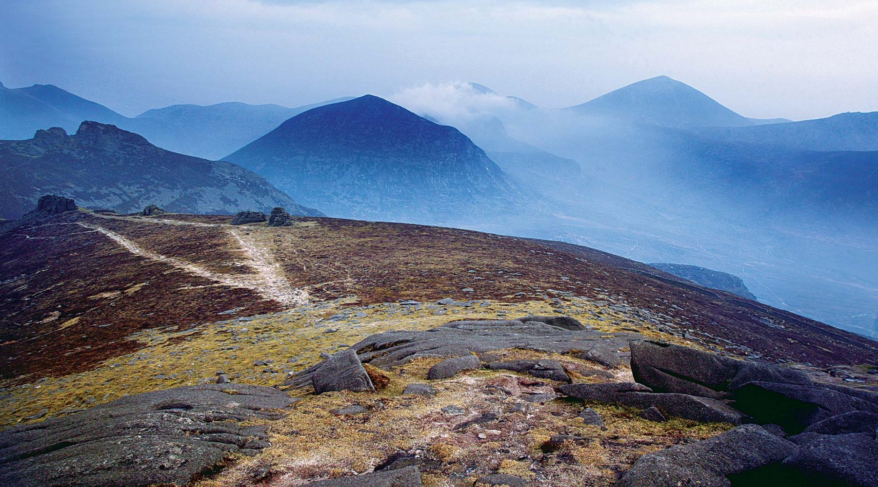 Geologically themed day hike through one of the most picturesque mountains passes in The Mournes, crossing The Mourne Wall to reach the fascinating ‘Diamond Rocks’.