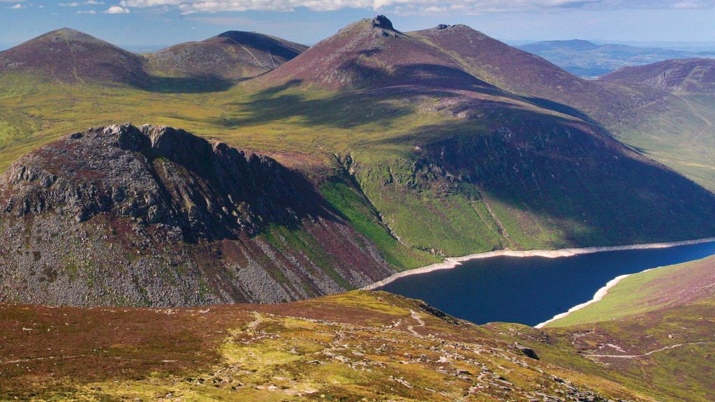 Geologically themed day hike through one of the most picturesque mountains passes in The Mournes, crossing The Mourne Wall to reach the fascinating ‘Diamond Rocks’.